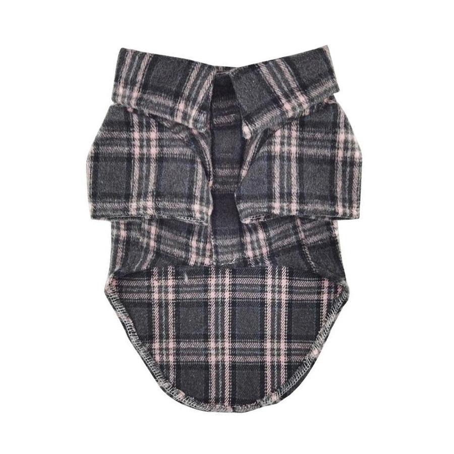 Keep your pup warm and stylish with this Dark Gray & Pink Plaid Flannel Dog Shirt. Made from soft, brushed fabric, it features a comfortable touch-fastener closure, short sleeves, leash hole for convenience, and a classic shirttail hem. Perfect for chilly walks or cozy days at home, this hand-wash shirt combines comfort, warmth, and timeless plaid style. Available in multiple sizes for the perfect fit.